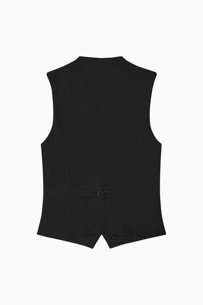 Miesbacher Weste von Gottseidank aus leicht gemusterten Webstoff und einem stretchigem Rückenteil.